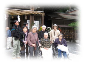 11/9(水)、短期入所施設利用者の皆さんと小國神社に遠足に行ってきました^o^。当日は大安の日ということもあり、お払いの希望者や神社への参拝客で賑わっていました。穏やかな天候にも恵まれ、皆さん、ぜんざい、お煎餅、お団子などご自分の好きな物を召し上がられ喜んでくださいました^-^。お土産コーナーでは、真剣なまなざしであれこれ手に取りながら、どなたかへの贈り物を買われた方もいたようです。。